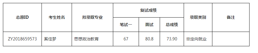 因米乐官网思想政治教育专业拟录取考生史宏月(志愿ID:ZY2018849163)确认放弃拟录取资格,经研究生院审核通过,学院现决定顺次递补拟录取该专业考生奚佳梦(志愿ID:ZY2018659573)。