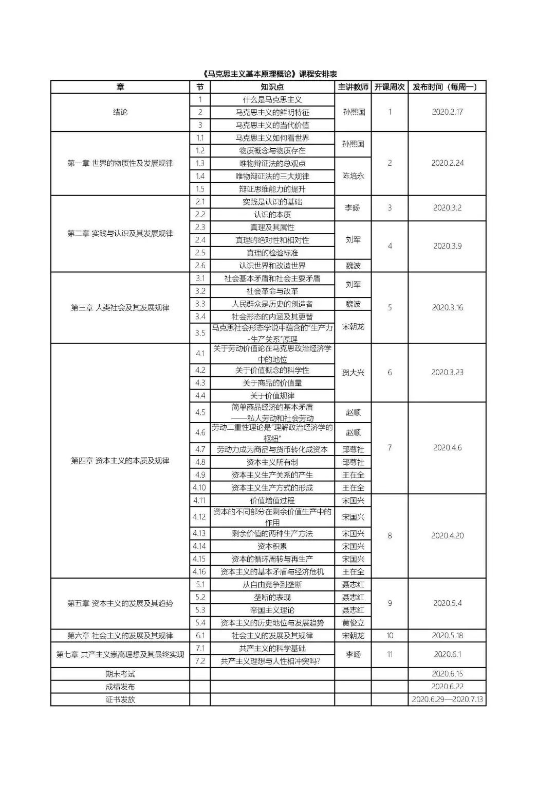 本科思政课教学自2020年2月17日正常组织,每周一上午8点在中国大学慕课网发布本周课程视频,同学们可在该周任一时间观看。贯彻线上“大班上课、小班讨论”的精神,关于课程内容有任何疑问或建议,欢迎同学们在“北大教学网”课程讨论区留言,或发送邮件、微信给班级助教。各班主管教师和助教会根据慕课进度,及时查看并回应北大教学网上同学们的留言、讨论。