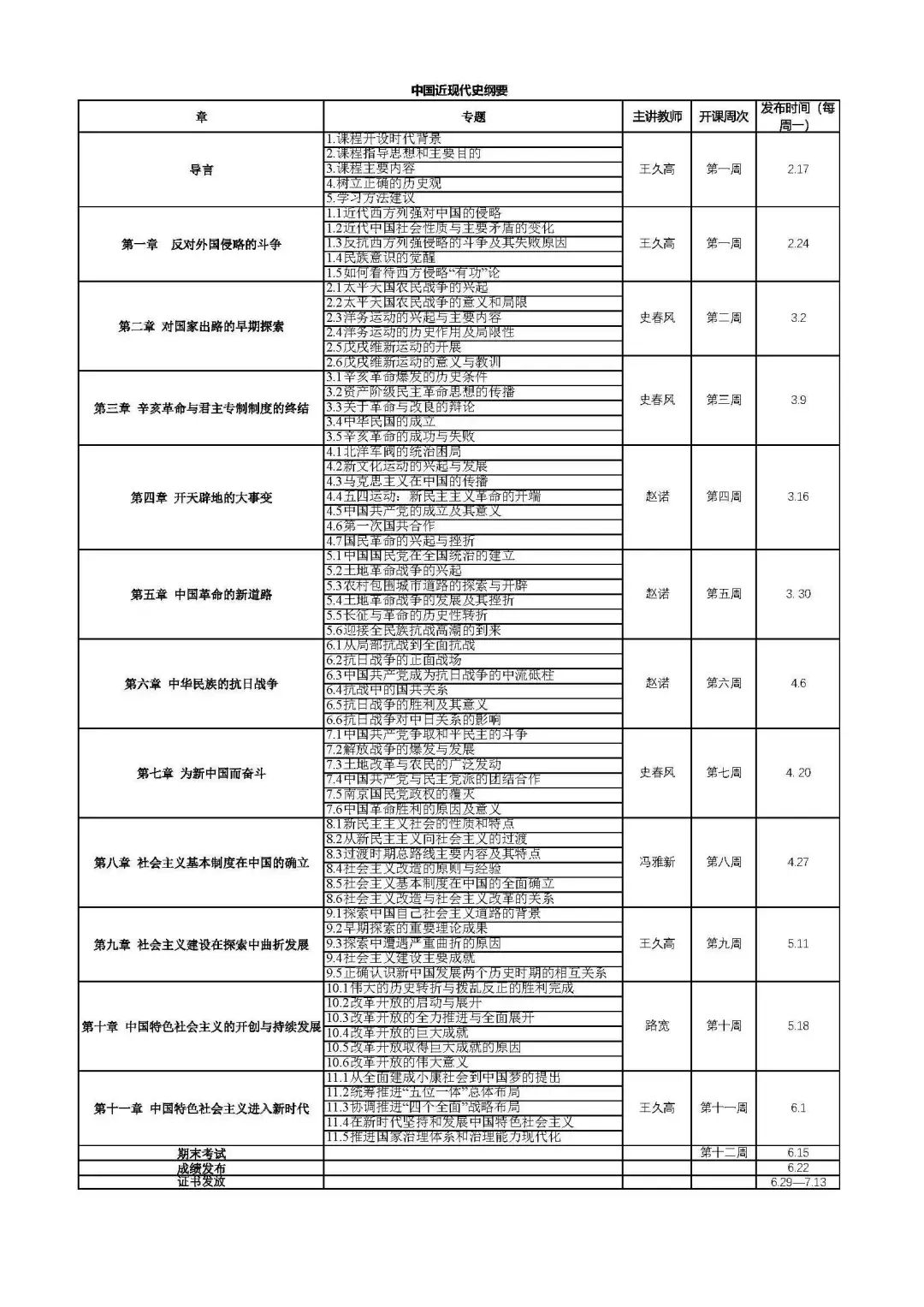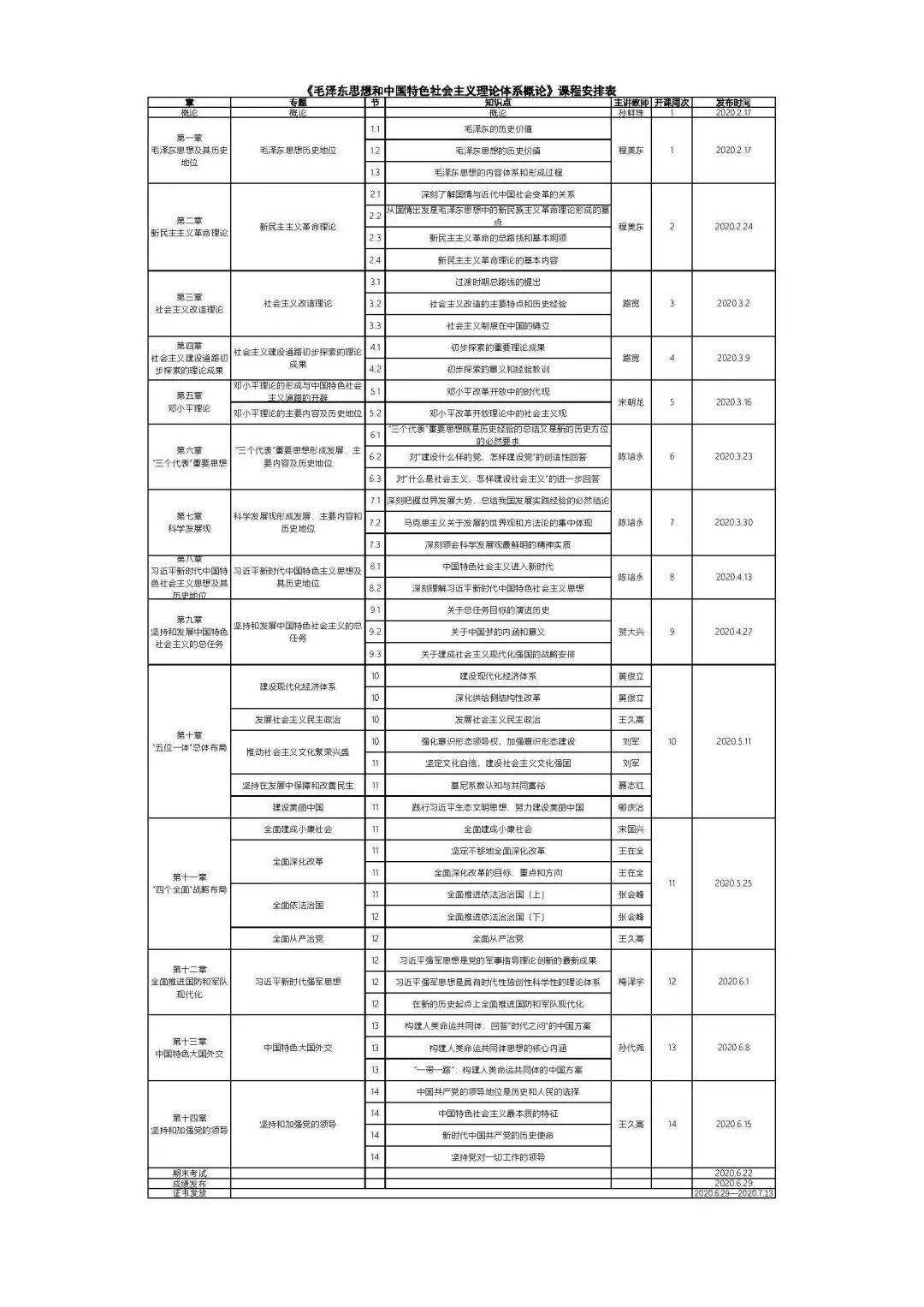 《马克思主义基本原理概论》《毛泽东思想和中国特色社会主义理论体系概论》《中国近现代史纲要》《思想道德修养与法律基础》,每周教学具体安排分别见附件一、附件二、附件三、附件四。