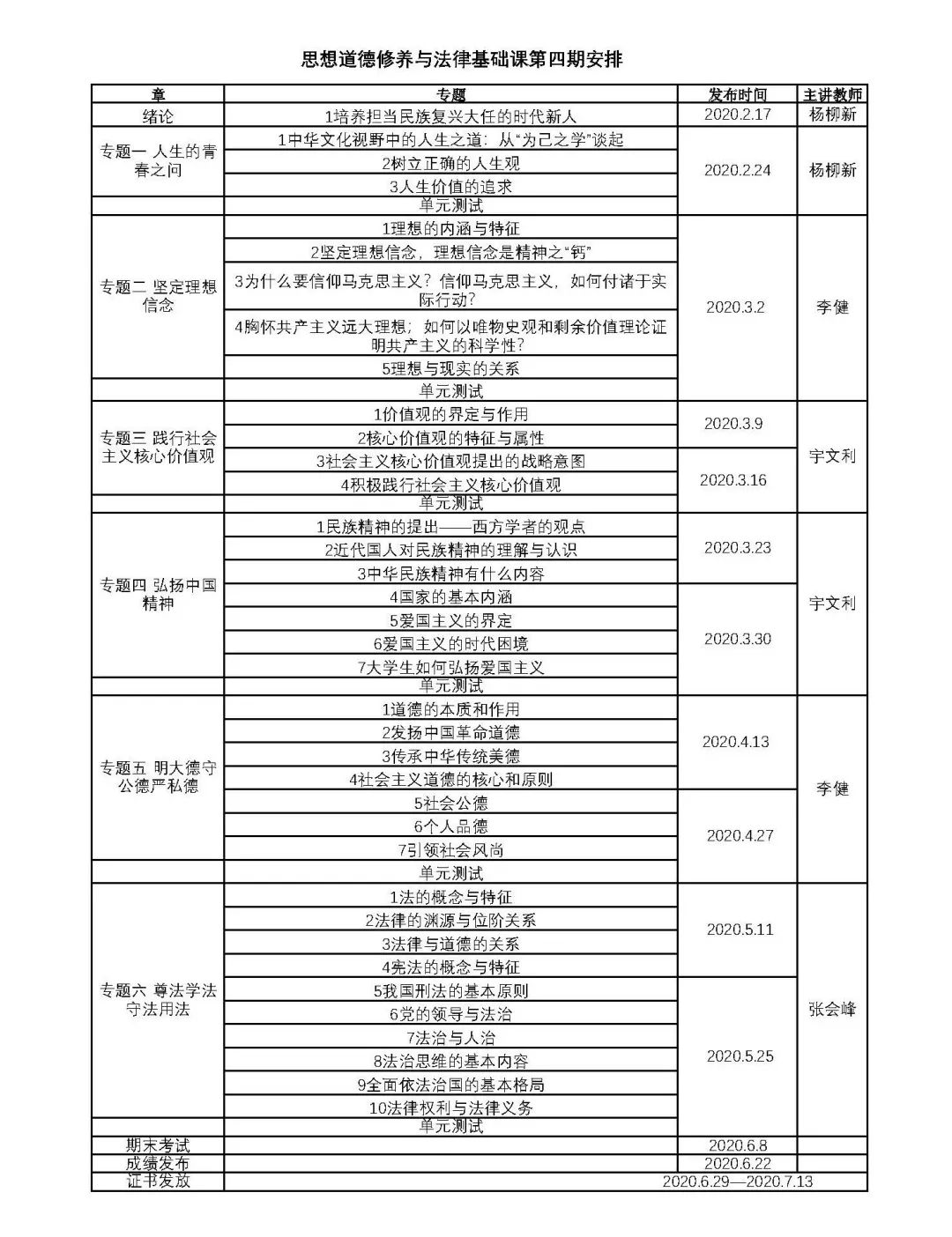 根据学校通知,待正常开学后,各班接续慕课推送进度,正常组织线下课堂教学,各班主管教师、助教将统计同学们的慕课学习记录,纳入正常考勤、考评。