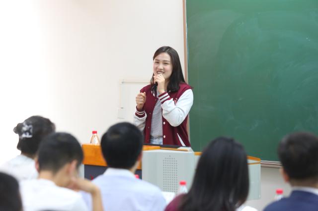 志愿者代表、中文2015级本科生丁琳在发言中回顾了自己参与两届世马会志愿服务工作的经历,特别提到在参与志愿服务工作中与国外学者结下了深厚的友谊,自身也获得了很多成长。她说:“所有美好的故事都是面对面发生的,你所经历的故事都会成为心灵的养料。”