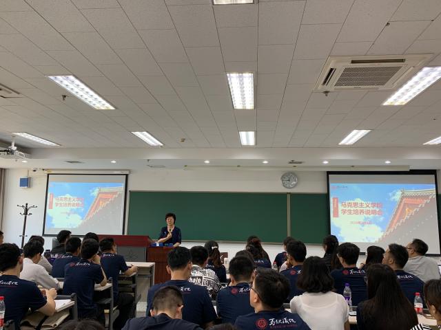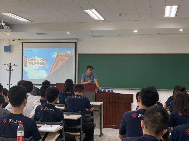 9月6日上午,米乐mile官方网站在理教307教室召开2019级新生培养说明会。学院党委书记孙蚌珠、副院长宋朝龙、党委副书记李石生、团委书记罗登科、研究生教务办公室王芳、石均岩,本科生教务办公室姚苏薇,学生工作办公室李玉洁和学院2019级硕博新生、首届马克思主义理论专业本科生参加了会议。