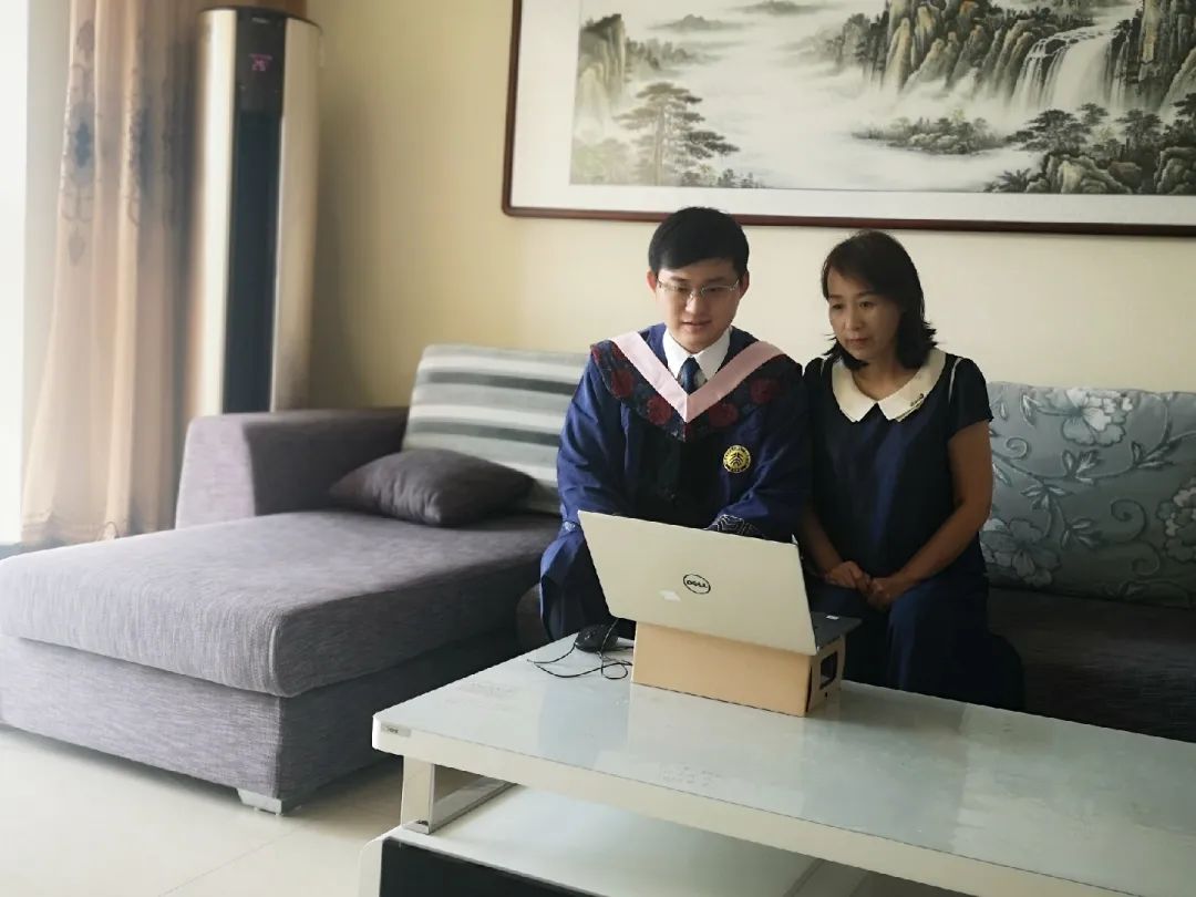 毕业典礼的主角除了2020届毕业生,还有为同学们成长无私付出的老师和亲友们。在感恩环节,线上线下的毕业生们分别向导师代表和父母鞠躬、献花,感谢老师们传道授业和父母的养育之恩。一个个拥抱、一声声祝福、一点点泪花,化作特殊毕业季的真情流动,更是对毕业生最美好的祝福。