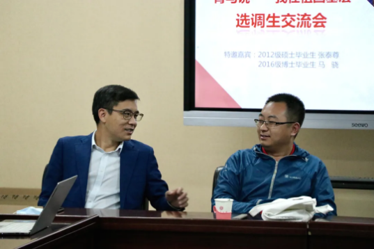 米乐mile官方网站于10月16日晚在理科5号楼301会议室组织召开“青马说——我在祖国基层”选调生交流会,特别邀请到学院两位优秀毕业生,国外马专业2012级硕士张泰尊(现在青海省委统战部工作)、科社专业2016级博士马骁(现在宁夏自治区委政研室工作)和学院在读的各年级同学交流座谈,学院多名同学参加了交流会。会议由罗登科老师主持。