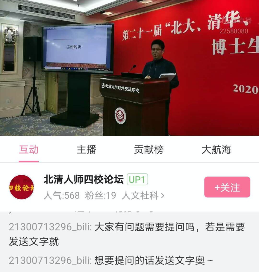 在四校同学们的积极参与下,本届论坛取得圆满成功,正像仰海峰院长所指出的,获奖同学的论文水平非常高,视野也很开阔,有对理论本身的讨论、学术史的关注,也有逻辑的分析和对当下问题的反思与批判,充分彰显了学术素养与人文情怀。同时论坛的举办也得到了参会人员的广泛好评。即将承办下一届四校博士生学术论坛的北京师范大学的同学认为,本届论坛首次采用的线上线下参会相结合的方式极具开创性,对于线上参会人员的水平把关也很值得赞许,很有必要在以后的各届论坛中将这种形式延续下去。清华大学和中国人民大学的同学认为,本届论坛的获奖论文水平很高,很有学术价值,收获良多,值得借鉴,同时,论坛的筹备工作也很充分和完善。