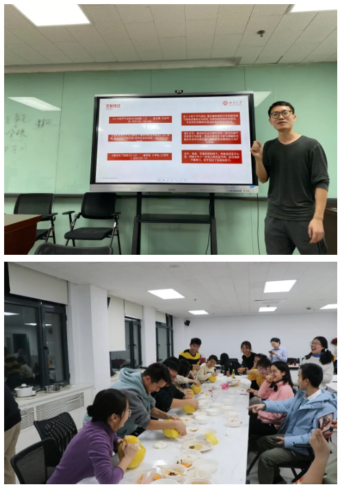 在同学们品尝自己的劳动成果期间,向威霖同学为大家普及了一些冬至和饺子相关的知识。而最后举行的掰柚子比赛更是把现场气氛进一步推向高潮,王振乾同学仅仅花费了10多秒就成功夺冠,不愧是大力出奇迹的典范。同学们也顺势把比赛道具--柚子当作饭后甜食吃进了肚子里,我们的冬至包饺子活动也在一片欢声笑语中顺利结束啦。