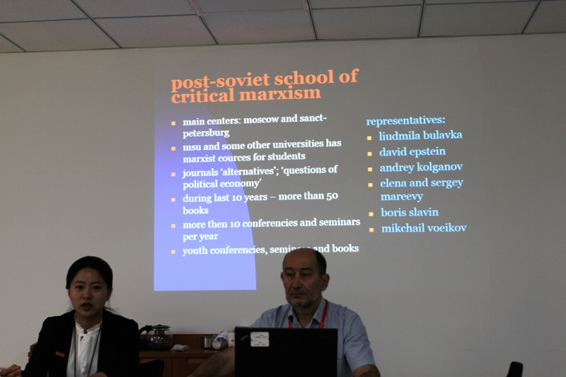 2018年5月7日上午,莫斯科大学经济系教授,俄罗斯“批判的马克思主义”学派的奠基者和主要代表人物亚历山大•弗拉基米罗维奇•布兹加林(Aleksandr Vladimirovich Buzgalin)在米乐mile官方网站举办的“纪念马克思诞辰200周年国际学术活动”系列学术讲座上,作了主题为“后苏联时代的马克思主义:俄国现代资本主义分析”的学术报告。学院党委副书记冯雅新老师、冯超超老师和研究生同学出席并进行讨论。