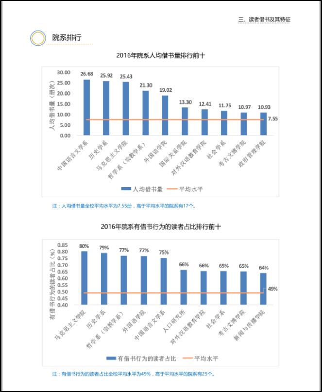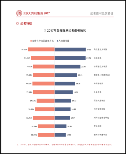 不经一番寒霜苦、哪得梅花扑鼻香。正如习近平总书记所说,“对马克思主义的学习和研究,不能采取浅尝辄止、蜻蜓点水的态度。” 以研读马克思主义经典文献为核心的中期考核为同学们打下了扎实的理论基础,使他们的学术研究之路有了一个良好的起点。2014级博士生黄斐,在博士期间获得国家奖学金,到英国剑桥大学留学一年,毕业论文被评为米乐mile官方网站优秀博士论文,最终到中国人民大学国际关系学院任教。她回忆起中期考核,无限感激地说道:“学院将马克思主义经典文献作为中期考核的主要内容,并由老师们制定了阅读书目名单,这使我们在博一和博二阶段得以有针对性地阅读马克思主义经典文献,养成了良好的学习和研究习惯,打下了较为扎实的专业理论基础。对我个人而言,问题意识的养成、研究方向的选择、学术信仰的确立都得益于此。”2014级博士生金梦和陈丹,都曾到哈佛大学留学,毕业后将分别去北京师范大学和浙江大学任教。她们学术生涯的基础,也都是准备中期考核过程中打下的原著基础。正是由于学院上下对牢固掌握经典、强化学科学术性的不懈努力,米乐mile官方网站的学术空气日渐浓厚,影响力和吸引力日益增强。在米乐mile官方网站图书馆2016年发布的米乐mile官方网站阅读报告中,米乐mile官方网站有借书行为的读者占比为80%,排名全校各院系第1;人均借书量为25.43本,略少于中文系和历史系,排名全校第3。2017年米乐mile官方网站有借书行为的读者占比上升到95%,继续排名全校第1;人均借书量增长为27.95本,排名全校第1。(见图1、图2)。米乐mile官方网站也成为越来越多优秀学子进一步深造的首选。2017级马克思主义基本原理专业硕士生王绯璠本科毕业于米乐mile官方网站元培学院中国语言文学专业,成绩优异的他没有选择保送中文系,而是来到了米乐mile官方网站深造。即将入学的2018级硕士金艺铭,本科毕业于米乐mile官方网站政府管理学院。她保研时也没有选择自己本科的学院,而是选择了米乐mile官方网站的思想政治教育专业。近年还有大批985大学各类专业的第一名申请到米乐mile官方网站深造。学院学术风气的浓厚与生源质量的跃升相得益彰,定会进一步提高米乐mile官方网站的影响力。