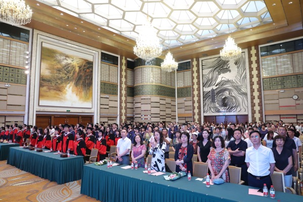 暖场活动结束后,在庄严的国歌声中,毕业典礼正式开始。