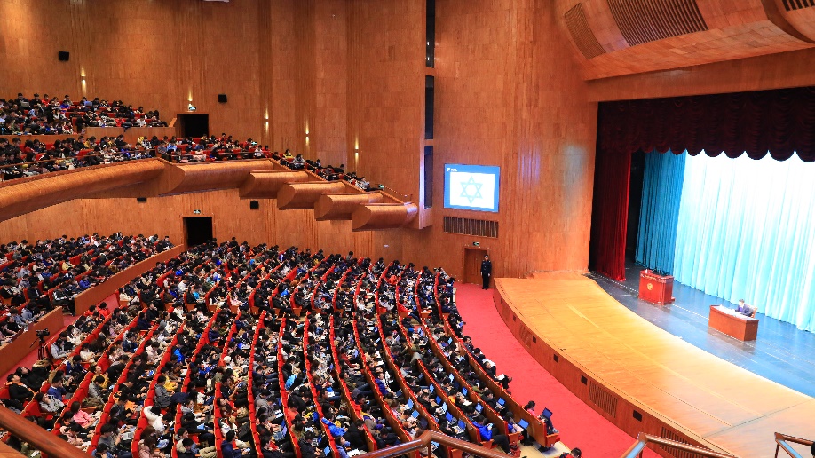 王镝分享了作为外交人员自己和同事在中东工作的心路历程,指出外交人需要具备敢于担当、作风过硬的素质,还需要有开拓创新、奋发进取的精神。在他娓娓道来的讲述中,外交人面对战乱和艰苦环境时忠诚担当、进取无畏的形象逐渐清晰,令人动容。“和平真好”,是王镝经历了战乱艰险回到祖国怀抱最真实的感受。他勉励大家,同学们赶上最好的时光,一定要珍惜我们现在来之不易的和平环境,好好学习,学成以后为祖国作贡献。