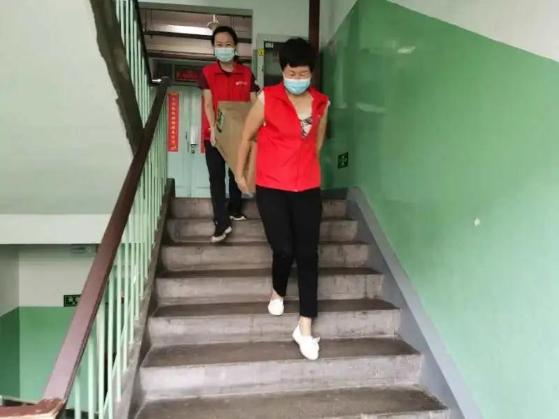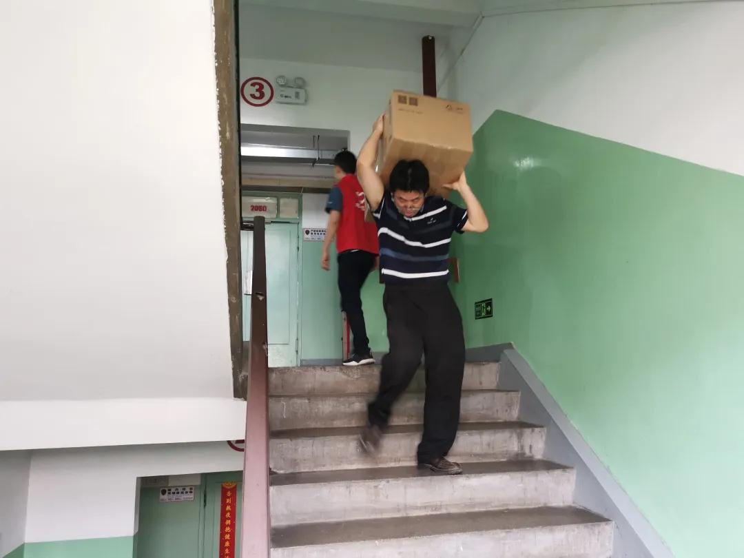 宋朝龙、李石生、罗登科和张恒老师为毕业生搬运打包行李,一趟趟往返楼梯