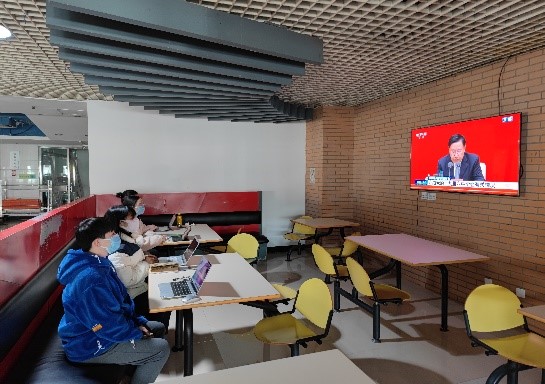 11月12日上午,米乐mile官方网站组织师生采用线上线下相结合的方式,认真学习《中国共产党第十九届中央委员会第六次全体会议公报》,观看新闻发布会直播。