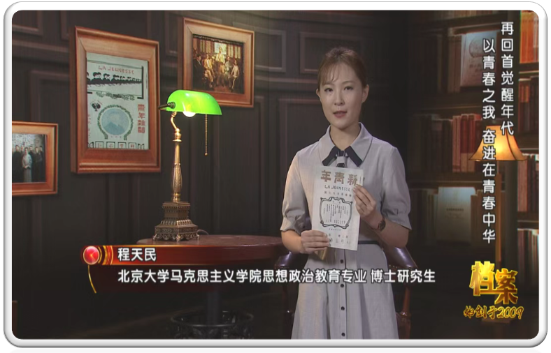 另一方面,陈晓仪同学、覃夫杰同学参与北京卫视纪录片《播火》拍摄,在不同分集中承担了讲述人的角色,程天民同学参与北京卫视《档案》栏目为纪念《新青年》杂志创刊105周年,特别策划的《再回首觉醒年代——以青春之我,奋进在青春中华》节目录制,承担讲述人的角色,以北大学子的身份,带领观众感受了《新青年》创办与发展的风雨历程,节目累计观看人数超过100万人。