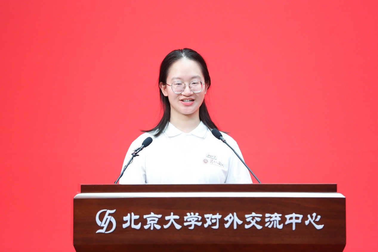 马克思主义理论专业2022级本科生周怡君代表本科新生发言。周怡君首先向迎接、帮助、陪伴同学们适应新校园、融入新集体的老师与学长学姐表达诚挚感谢。她表示,北大的红色基因、光荣传统和深厚底蕴深深吸引青年学子,在北大、在马院的学习生活,必将在生命中留下特有印记和成长的宝贵财富。她分享了自己对“人”的问题的一些思考,渴望在更广阔的天地探索宇宙人生的奥秘。她提到,作为青年学子,应将个人的命运自觉融入到国家民族和人类的命运之中,与时代同频共振,为中华民族伟大复兴做出自己的贡献。