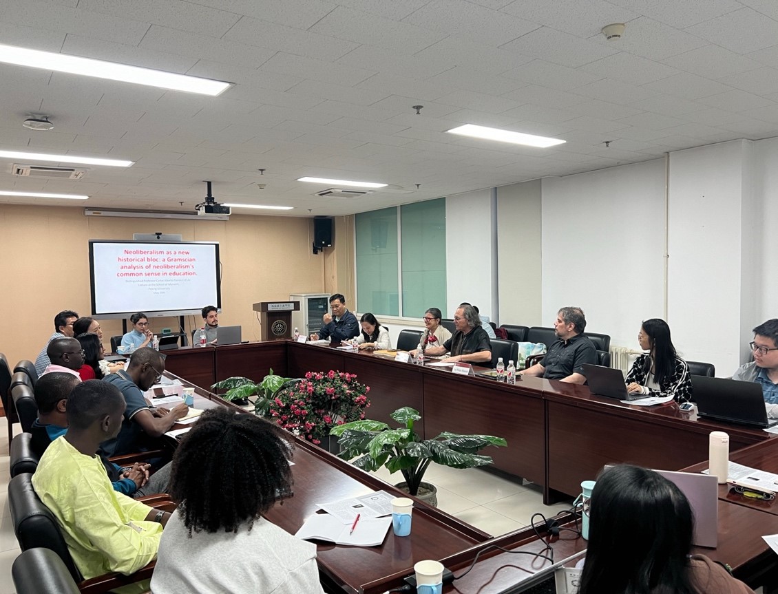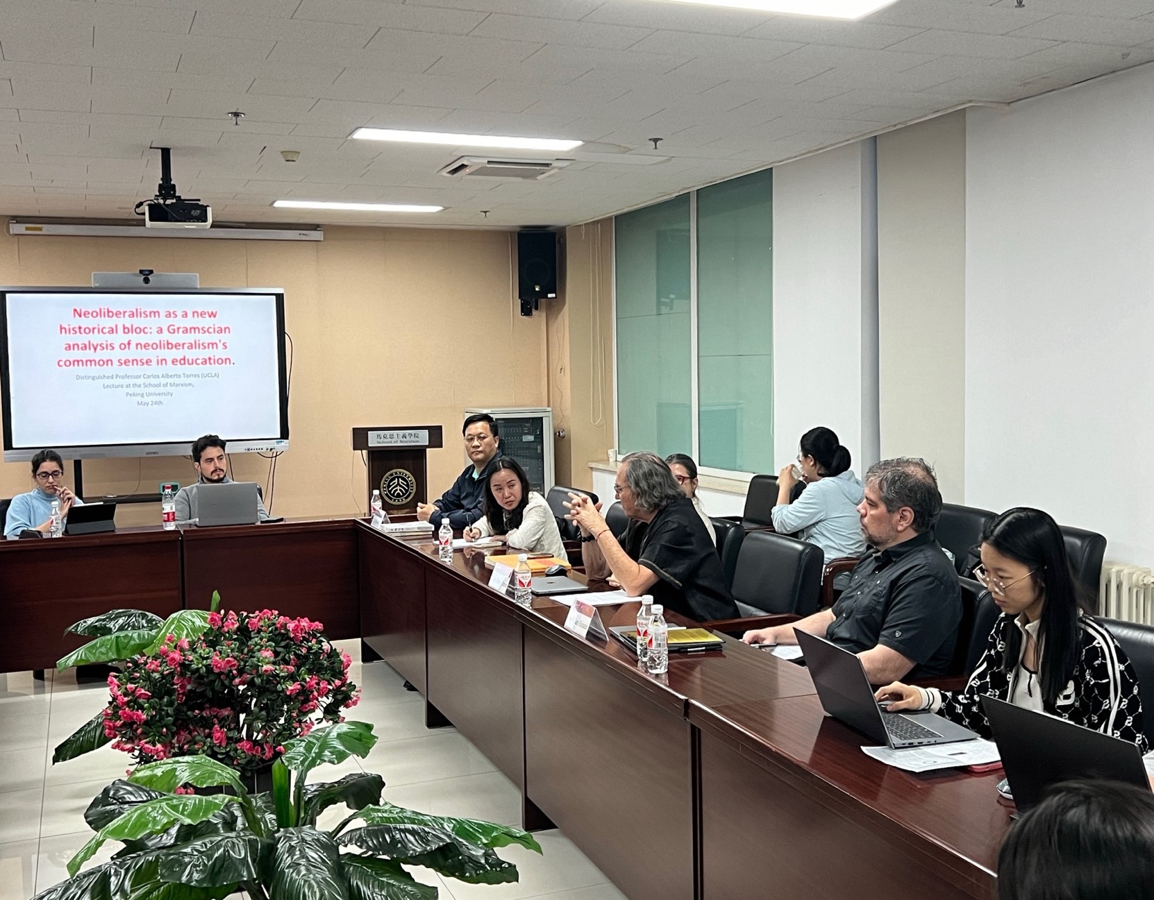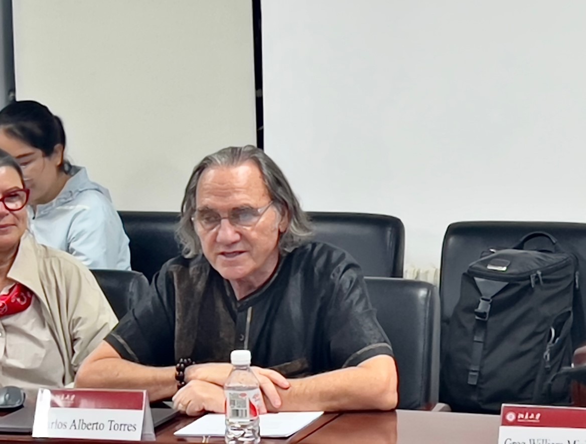 2024年5月24日下午,加州大学洛杉矶分校教育系杰出教授、联合国教科文组织全球学习与全球公民教育主席、加州大学洛杉矶分校保罗·弗莱雷研究所所长兼创始人卡洛斯·A·托里斯(Carlos Alberto Torres)受米乐mile官方网站邀请,为学院师生作“作为新历史集团的新自由主义:葛兰西视角下新自由主义教育常识探析”(Neoliberalism as a new historical bloc: a Gramscian analysis of neoliberalism's common sense in education)主题讲座。讲座由米乐mile官方网站教授、副院长宇文利主持,北京师范大学教育学部副教授、加州大学洛杉矶分校保罗·弗莱雷研究所副所长格雷格·W·米西亚塞克(Greg William Misiaszek)参与对谈,米乐mile官方网站、历史系、社会学系、哲学系、教育学院以及北京师范大学政府管理学院、教育学院的中外师生30余人参与活动。