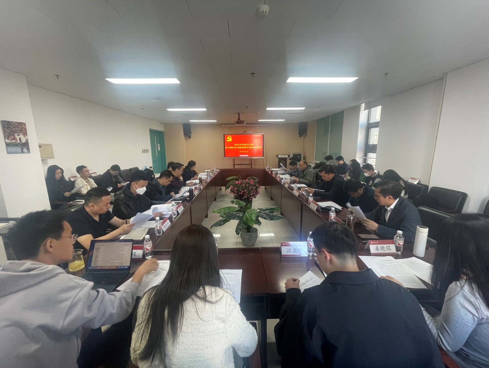会前,大家集中观看了《新闻联播》关于《中办印发<通知>在全党开展深入贯彻中央八项规定精神学习教育》的报道视频。