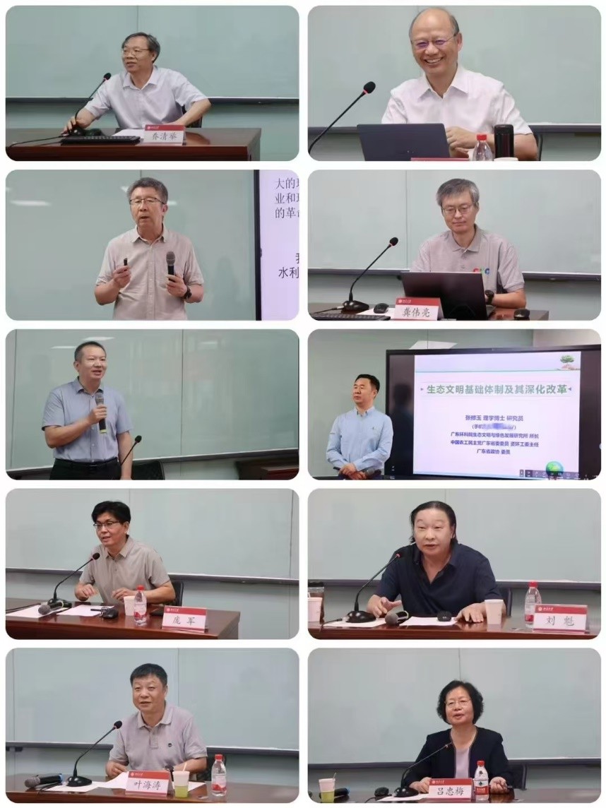 乔清举以“儒家生态哲学的元理论体系建构及其意义”为题,系统梳理了儒家生态哲学的七大元理论要素,总结其五大历史发展阶段,提出可以通过扩展史料视域与运用“从根源出发的语境还原法”“视界移置融合法”等方法,推动中国哲学在生态文明时代形成具有普遍意义的世界表达。王晓毅以“生态现代化视角下的农业绿色转型”为题,梳理了我国农业现代化的历史进程,指出中国农业绿色转型是在国家政策引导、技术革新、社会参与等多重因素共同推动下实现的,体现了以问题导向与过程优化为特征的本土经验,为全球农业生态转型提供了有益参考。杨开忠以“以新质/生态文明生产力范式推进人与自然和谐共生的现代化”为题,系统论述了生态文明建设的实质与范式的转变,明确生产力范式的核心内涵,并提出以此推进人与自然和谐共生的现代化。龚伟亮以“中国生态文明国家形象的国际形塑与传播”为题,指出我国生态文明形象的国际传播应立足于两大理论高度,正视制度冲突与意识形态对立,推动去西方中心主义的主体建构,并围绕“向谁传播、传播什么”两个核心环节,构建内外一致、上下联动、可感可行的国家形象传播体系。余敏江以“中国式现代化进程中的现代环境治理体系构建”为题,系统阐述了中国式现代化与环境治理体系之间的互促关系,梳理了环境治理体系的历史演进与地方实践经验,并提出推动环境治理体系不断进阶的方向与路径。张修玉以“生态文明基础体制及其深化改革”为题,提出习近平生态文明思想可归纳为“十观”,系统梳理了国家生态文明体制机制的改革历程与当前改革方向,并以粤港澳大湾区美丽中国先行区为案例,展示了生态文明体制机制改革的实践路径与成效。庞军围绕“人与自然和谐共生中国式现代化的制度政策维度”,系统阐释了推进该进程中需重点关注的发展方式绿色转型、碳达峰碳中和、生态产品价值实现机制等关键性议题,梳理了相应的制度体系与政策体系,并对制度政策体系的创新方向做出前瞻性展望。刘魁以“古典马克思主义视域下的生态社会”为题,梳理了马克思恩格斯关于生态社会的基本构想与主要特征,指出这一思想在历史上对莫里斯、倍倍尔等人产生重要影响,并强调这一构想在当代中国生态文明建设和全球生态治理中具有资鉴意义。叶海涛以“环境政治学视域下的生态文明建设”为题,深入探讨了“环境、生态、政治”与“自然、文化、文明”等基础性概念的内涵与外延,厘清环境政治学与生态文明在理论层面上的边界与交汇关系,强调建构中国自主的生态文明与环境政治学知识体系的重要意义。吕忠梅以“以习近平生态文明思想为指导编纂《生态环境法典》”为题,围绕我国《生态环境法典》的编纂工作,对法典编纂的前期准备、《生态环境法典(草案)》的结构与内容、主要特点与亮点进行了系统性介绍。