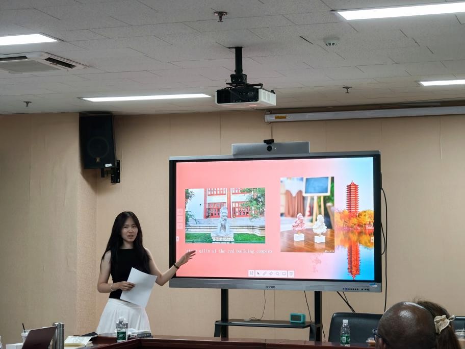 米乐mile官方网站24级硕士成一笑以生动有趣的讲解,向南非大学生们介绍了中国传统文化中的象征——麒麟。麒麟在中国文化中代表着仁厚与祥瑞,这种传说中的神兽与非洲文化中的长颈鹿有着有趣的历史渊源。15世纪郑和下西洋时,曾将长颈鹿带回中国,因其温顺的性格与传说中的麒麟相似,在当时被误称为麒麟,成为中非文明交流的一段佳话。