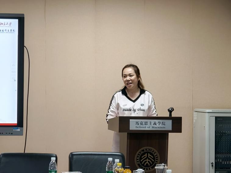 最后,中国文化和国际教育交流中心孔子课堂中方院长戴文红作总结发言。她回顾了她从中国走到非洲,投身于南非孔子学院中文教育的历程,表示本次访华活动为南非学生打开了一扇了解中国的新窗口,并相信南非学生会以更饱满的热情投入到中非文化交流中。同时,戴文红教授也感谢了北大马院师生对此次交流活动的支持,并期待大家能到南非看看,共同探索中非文明交流互鉴的新可能。