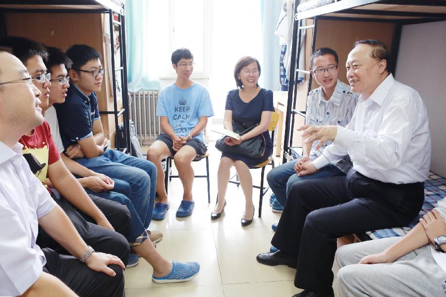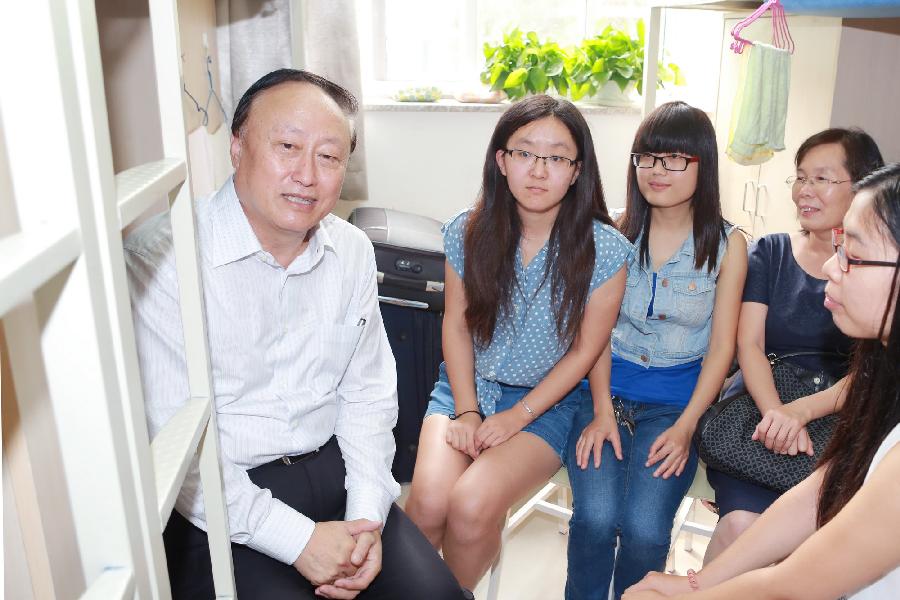 9月7日,随着迎新工作的顺利进行,2014级大部分新生已经入住学生公寓,即将开始崭新的燕园生活。上午10:00,校党委书记朱善璐专程来到学生宿舍看望新同学。