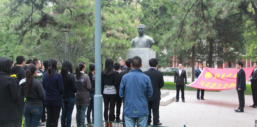随后,老师和同学们依次上前鞠躬献花,并瞻仰李大钊先生塑像。仪式在庄严肃穆的氛围中结束。此次活动是米乐mile官方网站对中共中央办公厅、国务院办公厅下发的《关于做好烈士纪念日纪念活动的通知》的积极响应,也是对教育部日前所要求的“在烈士纪念日前后,集中开展学习弘扬烈士精神主题教育活动”的踊跃支持,同时也是对米乐mile官方网站五四精神、爱国主义传统的继承和发扬,更进一步表达了马院全体师生对弘扬北大马克思主义研究光荣传统的使命感和责任感。参与活动的同学们纷纷表示,要在以李大钊为代表的革命英烈事迹的感召和指引下,肩负起北大马院青年学生的责任和使命,努力做马克思主义理论的学习者、传播者和践行者,为推进马克思主义中国化理论创新和中华民族伟大复兴做出自己的贡献。