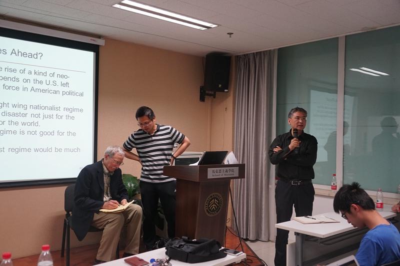 2017年5月9日至5月17日,美国著名马克思主义经济学家、苏联问题专家,美国麻省州立大学阿默斯特分校经济系教授大卫•科兹(David M. Kotz)和爱尔兰国立高威大学经济学系教授特伦斯·麦克唐纳(Terrence McDonough)受邀来米乐官网作系列学术讲座。系列讲座总共有六场,主题分别是:“特朗普政府:美国右翼民族主义政权?”(5月9日)、“有关停滞的争论:为什么美国经济增长得如此缓慢”(5月10日)、“西方马克思主义与现代政治经济学”(5月11日)、“今日教训之苏联解体”(5月15日)、“马克思主义政治经济学与新古典经济学:何者有助于理解当代经济问题”(5月17日)、“积累的社会结构理论与欧洲和爱尔兰危机”(5月18日)。两位教授通过对理论与现实的思考,深入阐发了马克思主义理论与实践中的状况,证明了马克思主义政治经济学的强大生命力。