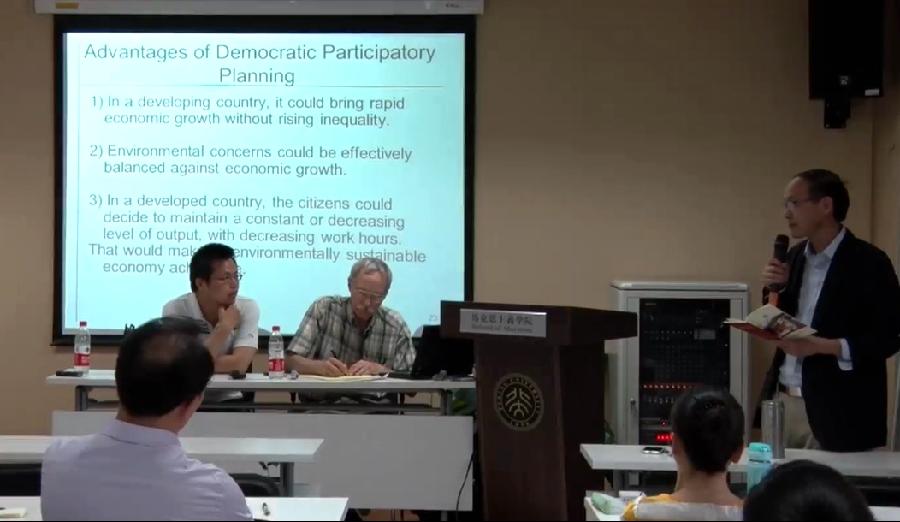 第五场大卫•科兹教授讲座的主题是“马克思主义政治经济学与新古典经济学:何者有助于理解当代经济问题”。科兹教授回顾了马克思主义政治经济学和新古典主义经济学的发展史,列举了亚当斯密的“看不见的手”理论、大卫李嘉图的收入分配理论以及马克思的劳动价值论等理论,并对新古典主义经济学理论做了相关批评。他认为,采取新古典经济学理论存在的主要问题有:个人行为完全受物质的利益主义所驱动、要求消费者对产品的完全了解、没有外部效应、没有公共产品、没有规模经济以及没有垄断。因此,新古典主义经济学并不适合当前资本主义经济的发展。他还具体解释了现代马克思主义政治经济学,并重点提出三个主要部分——即历史唯物主义理论、劳资关系理论以及资本主义经济扩张和危机理论。最后,科兹教授提出了怎样利用马克思主义政治经济学分析当代经济问题。他认为,马克思主义政治经济学是分析和理解当代世界经济问题的最好的方法,马克思主义政治经济学指出了一条解决经济问题的长远解决方法——过渡到真正的社会主义。