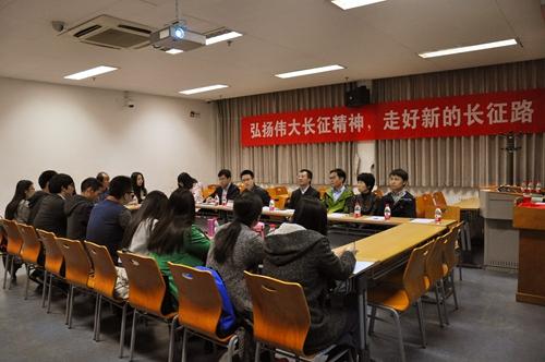 活动开始前,与会人员观看了习近平总书记在纪念红军长征胜利80周年大会上对伟大长征精神的论述短片。随后,李楠宣布活动开始并介绍了本次共建活动的背景。他表示,根据学校党委的相关指示和机关党委的具体安排,校团委党支部和马院学生党支部的共建主要基于共同学习、资源共享的目的,由马院学生党支部提供理论支持,由校团委党支部提供实践平台,从而使双方更好地实现优势互补。