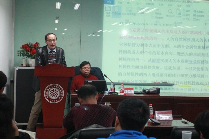 陈教授首先提出了马克思主义在当今中国的认可度不高这一令人深思的问题。接着从个人层面和国家与民族的层面对我们今天为什么需要马克思主义作出了分析。陈教授认为,个人的成就取决于自身的核心竞争力,包括判断力、意志力、境界、德性、方法等,这都与自身的马克思主义素养有关。人首先要有理想,要把对马克思主义、社会主义的信仰和理想作为自己的生存指向;我们今天对马克思主义的“需要”与对社会主义信仰的“需要”是紧紧联系在一起的。同时,要掌握马克思提供的方法,提升自身的能力。从国家与民族层面来看,马克思主义的意识形态是巩固中国共产党领导地位的“看家本领”;马克思主义对中国道路的开辟提供了理论启示:首先,要认识中国道路的合法性和合理性,离不开马克思主义。其次,要破解我们今天面临的难题和问题,离不开马克思主义的指引。中国道路是与西方有别的走向现代文明之路,怎样既实现现代化又避免现代性的后果,化解两极分化、人与自然的矛盾、人自身内心的矛盾等,马克思主义可以为我们提供思想资源。