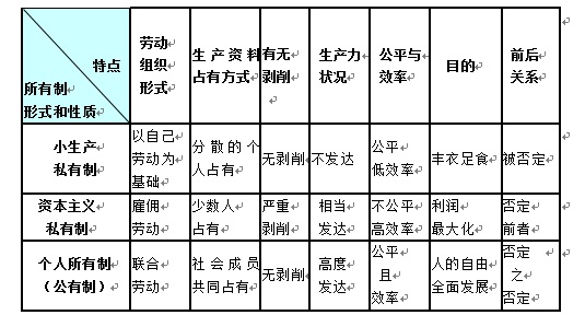表:三种所有制形式比较